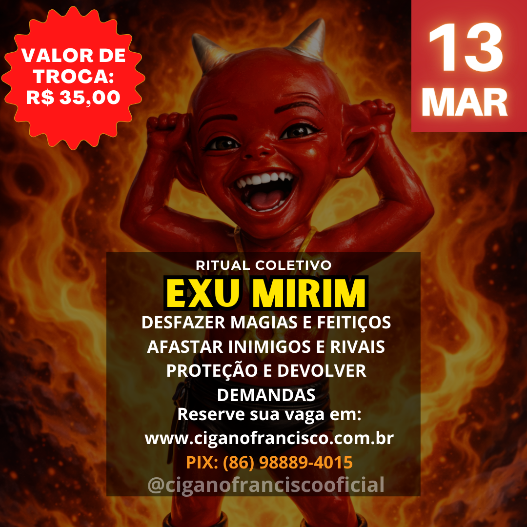 Pensando nisso, será realizado um Ritual Coletivo especial na força de Exu Mirim, uma entidade espiritual conhecida por sua capacidade de desmontar armadilhas espirituais, quebrar demandas e revelar aquilo que está oculto.